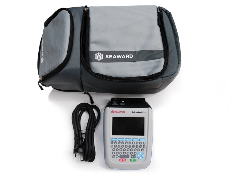Seaward Primetest Pro appliance tester, heavy-duty backpack, test leads, 12-month PATGuard 3 software licence, user manual.